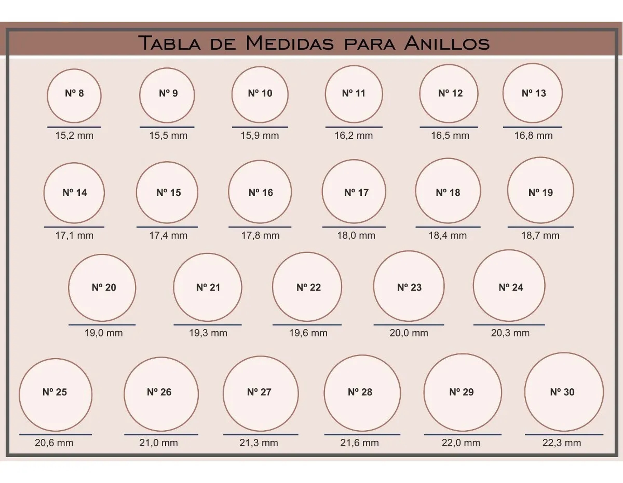 2 - Luego compara en la "Tabla de Medidas para Anillos" la medida tomada con su número correspondiente.